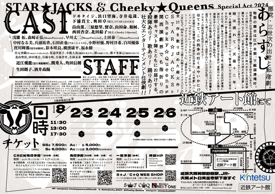STAR☆JACKS&Cheeky☆Queens Special Act 2024『天保十二年のシェイクスピア』が2024年8月23日 (金) 〜 2024年8月26日 (月)に近鉄アート館(大阪府 大阪市阿倍野区 阿倍野筋 1-1-43)にて上演されます。
