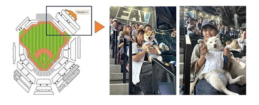 スタンド席で愛犬といっしょに野球観戦できる「ワンだふるシート」