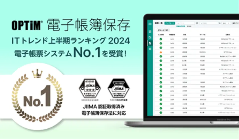 OPTiM 電子帳簿保存、『ITトレンド上半期ランキング2024』の 電子帳票システム部門にてNo.1を獲得