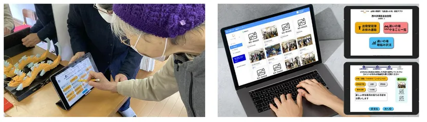 山陽小野田市での実証実験の様子と共同開発中のアプリケーションサービス