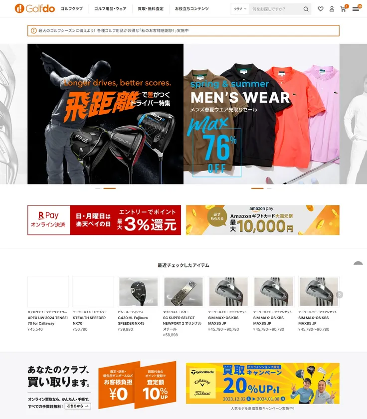 「ゴルフドゥ!オンラインショップ」は、中古ゴルフクラブ専門のECサイトにまだ珍しさが残る2006年3月にオープンし、その後順調に成長を続けつつ、コロナ禍によるEC需要の増加に合わせて一段と取扱高が増加するなかで、2021年4月には初のリニューアルを行いました。今回のリニューアルは、成長スピードの加速を目的とした「EC戦略の強化」方針のもと、妥協なき開発のために数度のオープン延期を挟みつつ、満を持してのリニューアルオープンとなりました。なお、「ゴルフドゥ!オンラインショップ」のリニューアルは、「EC戦略の強化」の根幹を成すものであり、近い将来に「ゴルフドゥ!」店舗との2本柱を形成するための重点事項のひとつとして、リニューアル後もユーザビリティ向上のため、新機能の追加やシステムの増強などを随時行うとともに、中古ゴルフクラブサイトにおいてのNo.1を目指してまいります。