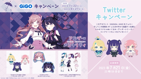 株式会社GENDA GiGO Entertainment(本社:東京都港区 代表取締役社長:二宮 一浩 以下、当社)は、GiGOグループのお店におきまして2023年7月22日(土)より、「ツユ×GiGOキャンペーン~アンダーメンタリティ~」を開催いたします。