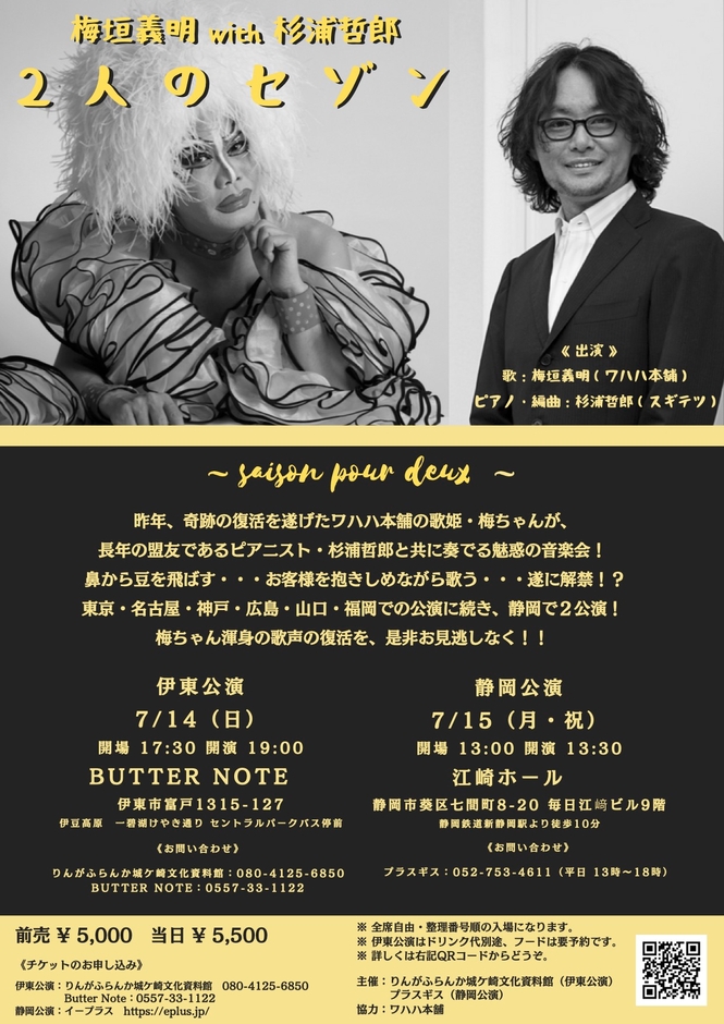 ワハハ本舗の歌姫・梅ちゃんが ピアニスト・杉浦哲郎と共に全国を巡る音楽会! 梅垣義明 with 杉浦哲郎『2人のセゾン』静岡で初開催