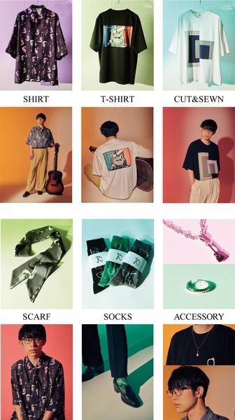 アーティスト写真やメガネ、ギターをモチーフに川崎鷹也さんをアイコニックに表現。ティーケー タケオキクチが得意とするグラフィックで総柄シャツからアクセサリーまでユニセックスなアイテムで多彩にアレンジ。コンサートコーデとしても休日コーデとしても楽しめるアイテムをぜひお楽しみください。