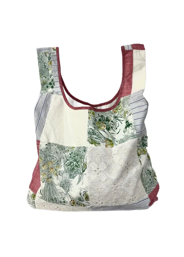 代表の磯部はこの無駄をどうにかできないものかと考え、当社が得意としているTPSミシンを使い、端切れ生地をかき集めてTPSではぎ合せ、一枚の生地に再生する取り組みを開始いたしました。環境に配慮した取り組みを通じて、当社にできることをコツコツとおこない皆様にお届けしたいと思っております。