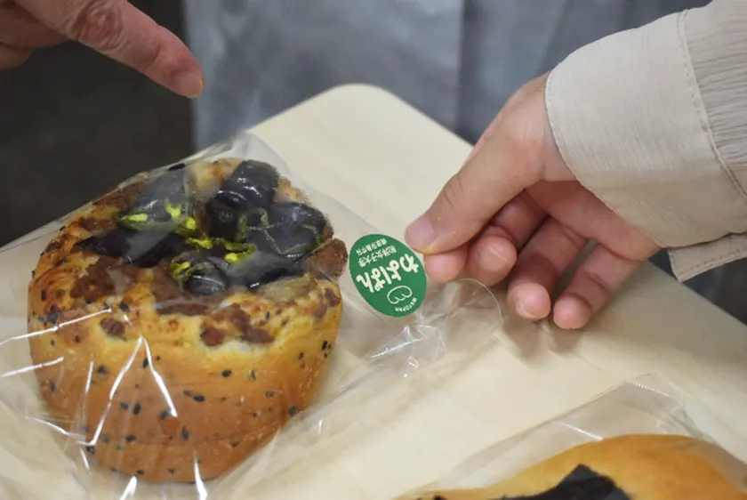 学生たちは、京成ストア担当者立会いの下、国府台駅前のリブレ京成内にある製パン専用の厨房で試作も行い、パッケージに貼るシールも学生たちが決めました。