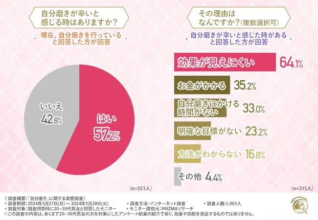 半数以上の方が自分磨きをしていて辛いと感じる時がある傾向が判明しました。