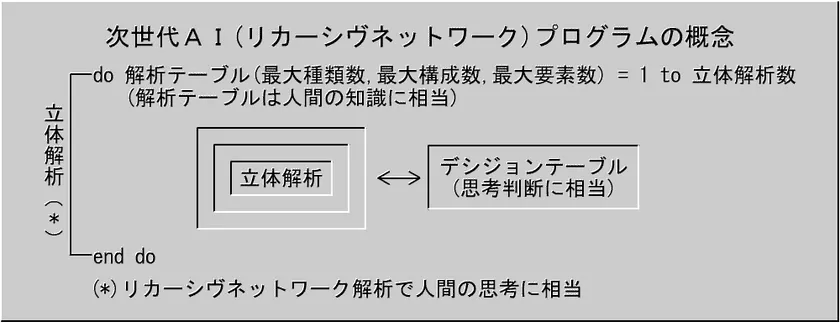 次世代AI(リカーシヴネットワーク)プログラムの利点は、プログラム容量が小さいのでタスクのマルチ化が可能、開発費用を抑制、開発期間が短期、立体解析なので解析範囲が広い、精度が高い等があります。