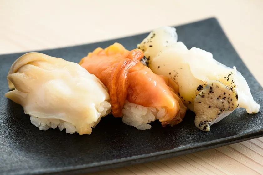 食べればわかる活貝三貫(日替わりネタ) 830円