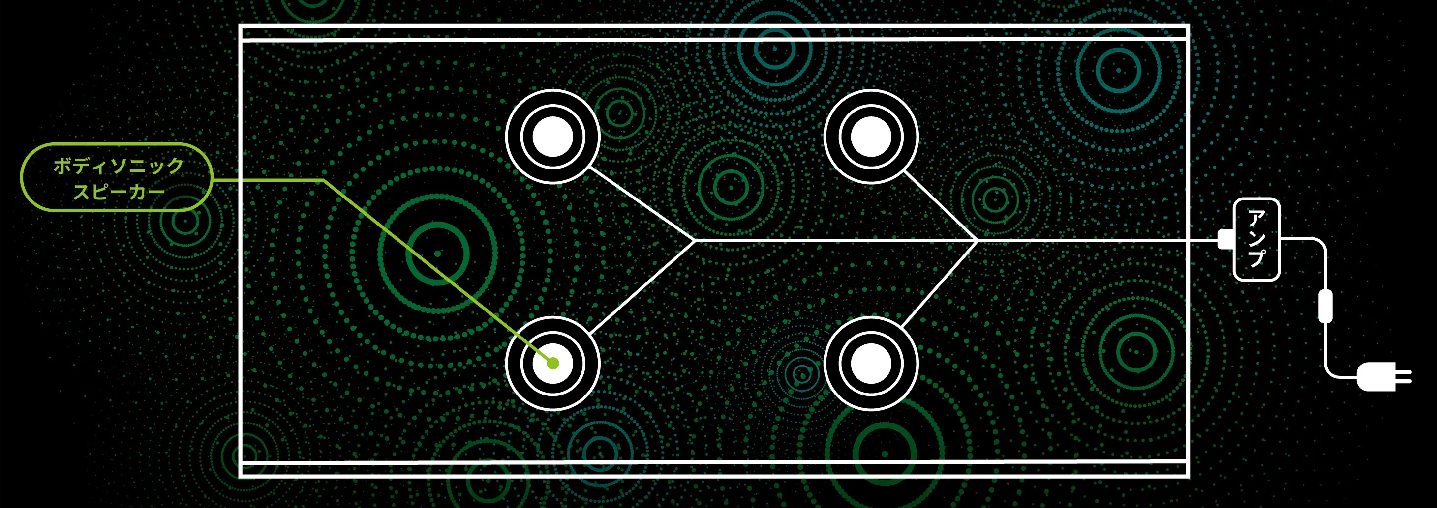 通常、人間は空気の振動を鼓膜で捉えて音を感じていますが、TTM-V20 では畳と接触した身体の部位から音の振動を感じ取ることが出来ます。