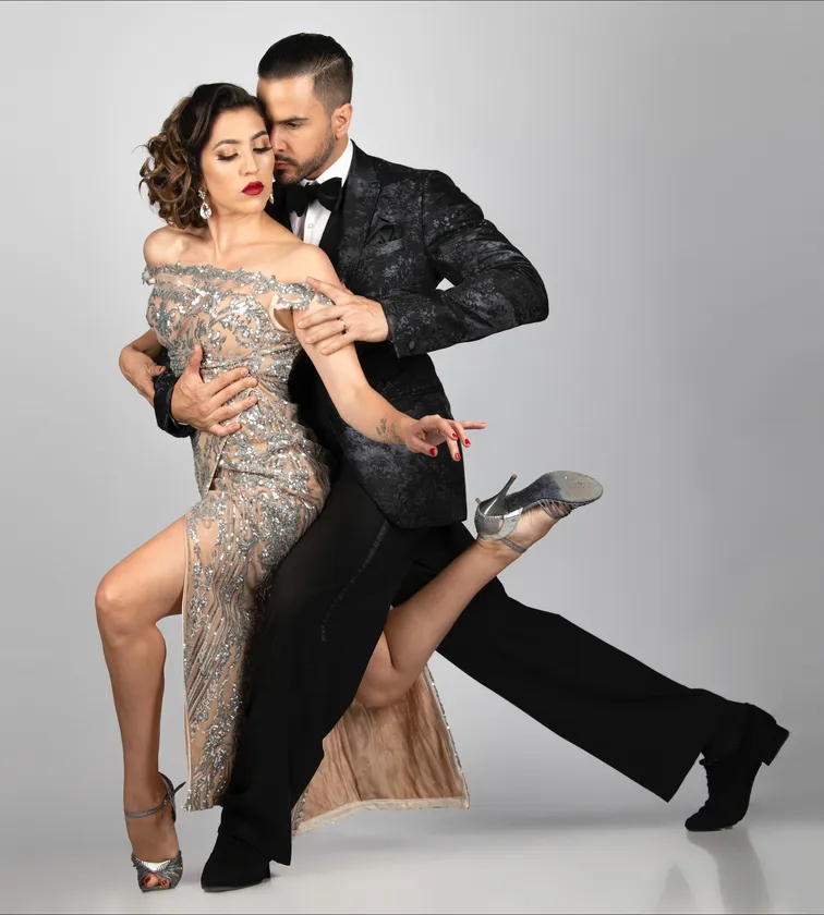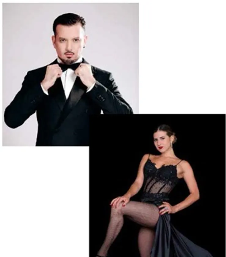 エマニュエルはブエノスアイレス州サラテの出身。18歳よりプロダンサーとして歩み始める。タンゴにとどまらず、その他クラシック、ジャズダンス、そしてラテン系ダンスに幅を広げ、その甲斐もあって母国アルゼンチンでは度々ミュージカル等にも出演した。現在は日本に活動拠点を置いてプロタンゴダンサー及び演出家として活動している。2021年 タンゴダンスアジア選手権 ステージ部門優勝、2022年タンゴダンスインドネシア・バリ選手権ステージ部門優勝。ナディアはアルゼンチン国立芸術大学にて振付構成の学位を取得後、クラシカルダンスやタップダンスの講師などを経験。2023年から2024年までブエノスアイレスの「バー・サー」のダンサーを務める傍ら、タンゴダンサーとして活動。2021年、2023年タンゴ世界選手権ピスタ部門のセミファイナリスト。ふたりともバネッサ&ファクンドがプロデュースする「The Cxuce」のメンバーでもある。