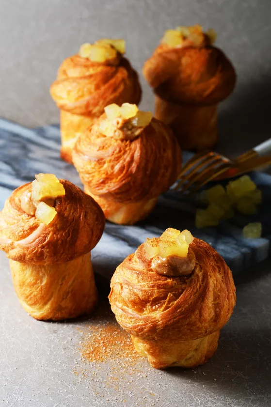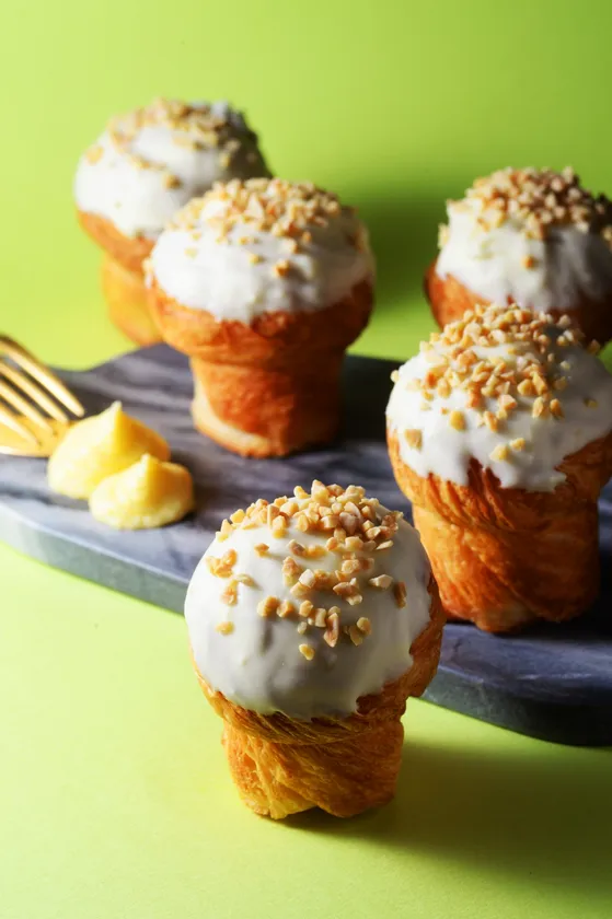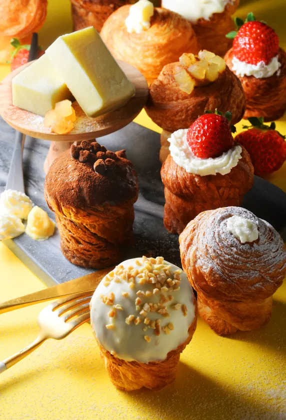 クロフィンとは、クロワッサンとマフィンを組み合わせた新感覚スイーツです。クロフィンはオーストラリアで生まれた後、ニューヨークで大ブレイクしました。多くのベーカリーがクロフィンを提供し、瞬く間に人気メニューとなりました。今は韓国でもクロフィンは大人気で、特に若い世代の間でSNSを通じて話題となり、多くのカフェやベーカリーでクロフィンが取り扱われています。外はサクサク、中はふわふわの食感が特徴で、一度食べたらやみつきになること間違いなしです。