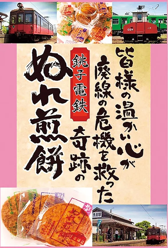 鉄道の赤字を補うため鉄道員が考案したぬれ煎餅。この収益で銚子鉄道は今年101周年を迎えた。