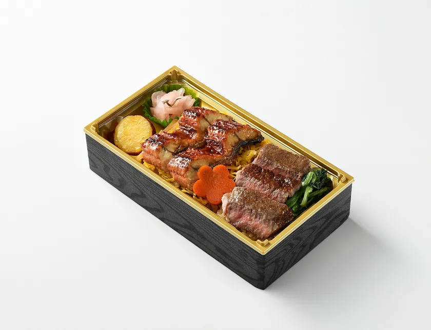 鹿児島県産うなぎと鹿児島黒毛和牛のステーキを使用した贅沢な弁当は東武限定品。