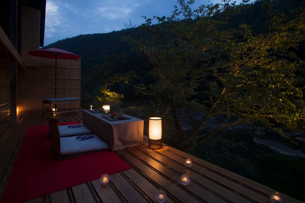 平安貴族が別邸を構えた京都府・嵐山。渡月橋から船に乗り、大堰川を遡ると現れる水辺の私邸。京都に息づく日本の伝統技法を感じる客室、伝統的な日本料理に軽やかな遊び心を加えた料理、四季の美しい景観と静けさの非日常の世界を楽しめるリゾートです。