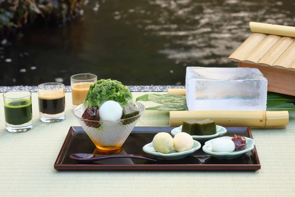 16:00 涼しさを感じる納涼床で特製のかき氷を楽しむ