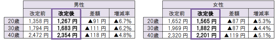 20~40代を中心に保険料を引き下げます。入院・手術保障を主とした基本設計、三大疾病保障を上乗せした設計ともに、現行よりも低廉な保険料でお求めいただけるようになります。