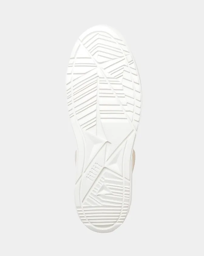2. アッパーのニット生地は、機能を持たせるために編み分けたオリジナル生地。履き口等伸縮性を持たせたい箇所はリブ編みにし、しっかりホールドさせたい部分は目を細かく。トウ部分は指の形を拾わないように少し立体感を持たせています。第三者機関のテストをクリアした色落ちしない生地を使用しているので、汚れや退色を気にして色物のスニーカーを避けていた人にもおすすめです。