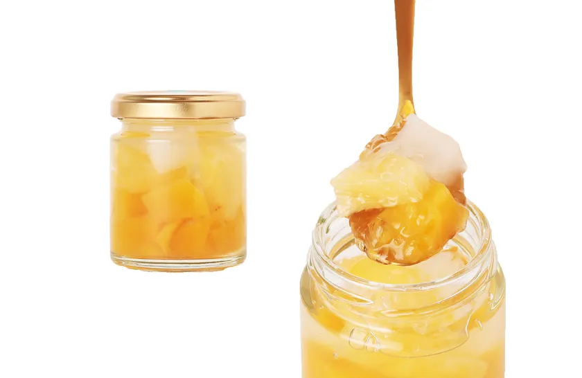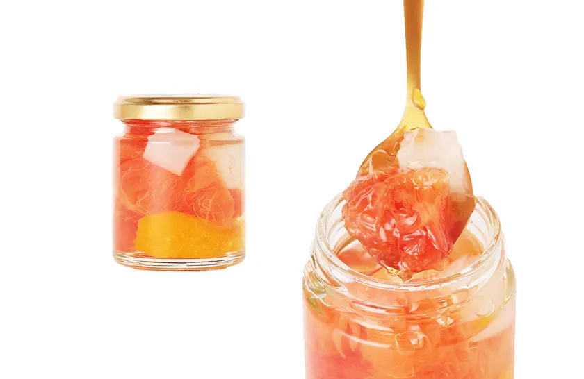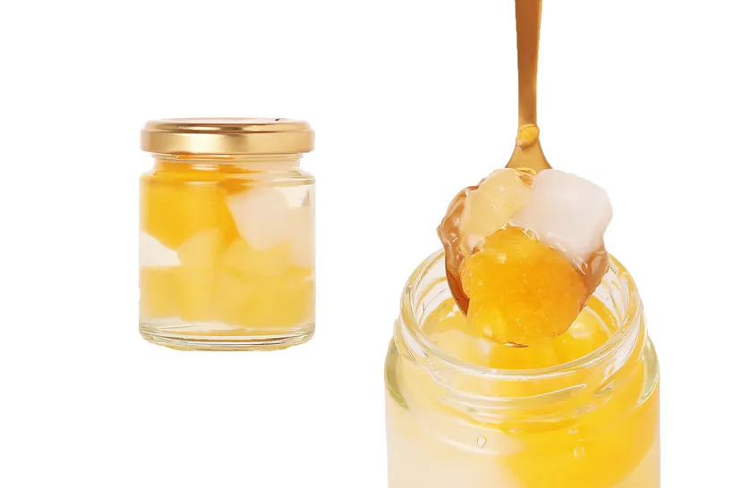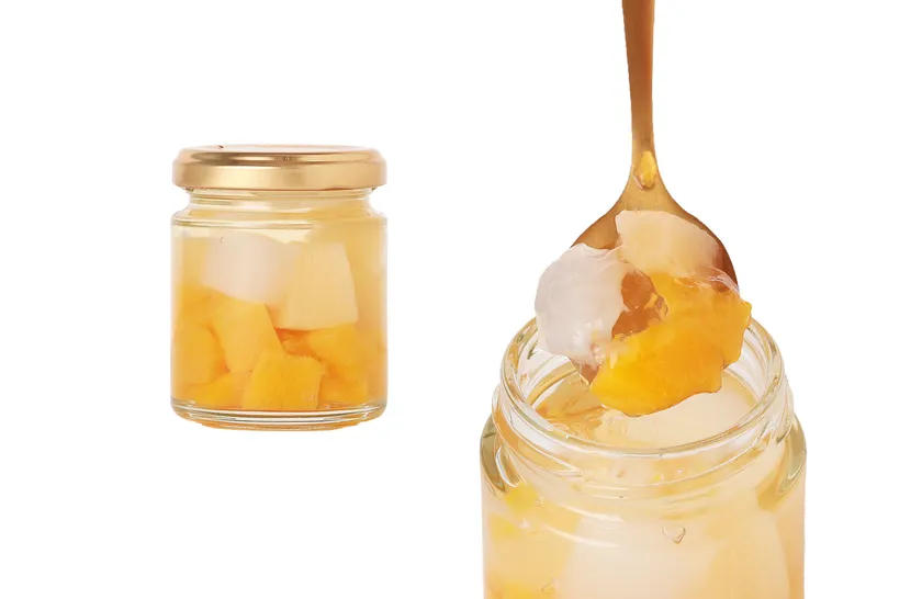 リンゴとびわを贅沢に使用した、自然の甘みと酸味が魅力のゼリーです。ナタデココの食感がアクセントになり、どこか懐かしい味わいを楽しめます。