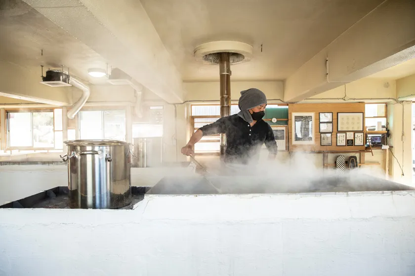 勝浦の景勝地「鵜原理想郷」周辺の海で新月と満月の満潮時の海水を汲み、昔ながらの平釜式製法で塩を生産する製塩所。ここで製塩される勝浦塩は、勝浦市や周辺市町にある勝浦塩販売店、もしくはECサイトにて購入可能。