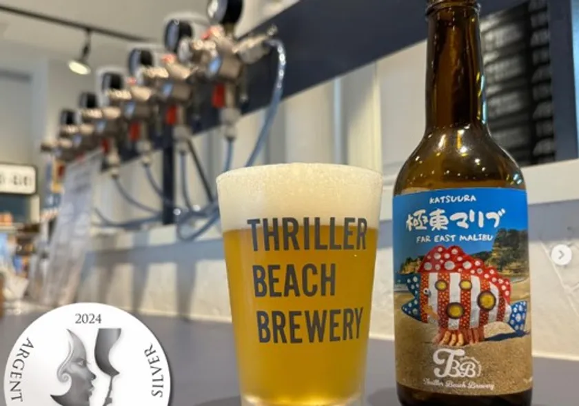 「THRILLER BEACH BREWERY」は、2023年に勝浦に誕生したクラフトビール醸造所。フランスで開かれた「第18回フェミナリーズ世界ワインコンクール2024」の日本産ビール部門で、銀賞を獲得したオリジナルのクラフトビール「極東マリブ」は口当たりが甘く柔らかい、メロンの様なジューシーな香りが特徴の大人気銘柄です。
