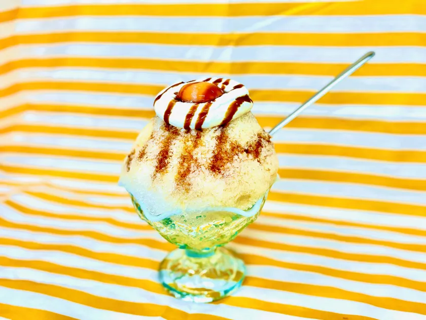 そして今回の第三弾は濃厚なプリンの味わいを表現すべく第二弾のかき氷を進化させ、生クリームと贅沢にも新鮮な比内地鶏の生たまごを1個のせ、TKG風のプリンかき氷に。