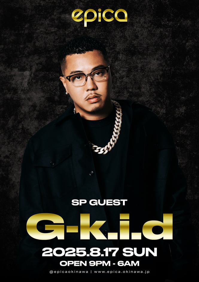 株式会社SEQUENCE(代表取締社長:高田 一司)が運営する「エピカ・沖縄」(所在地:沖縄県那覇市松山1-5-1 ナムラプラザビル3F)は、2025年8月17日(日)、元BAD HOPのメンバー【G-k.i.d】のソロとしては沖縄初公演となるライブを開催する事が決定致しました。