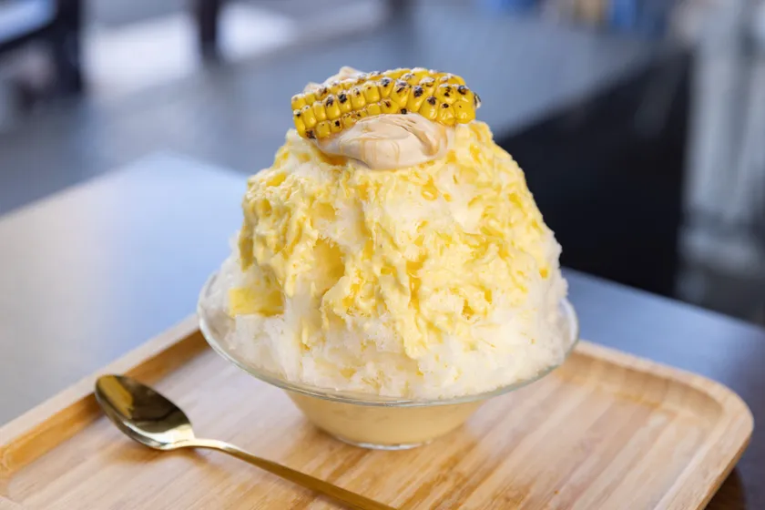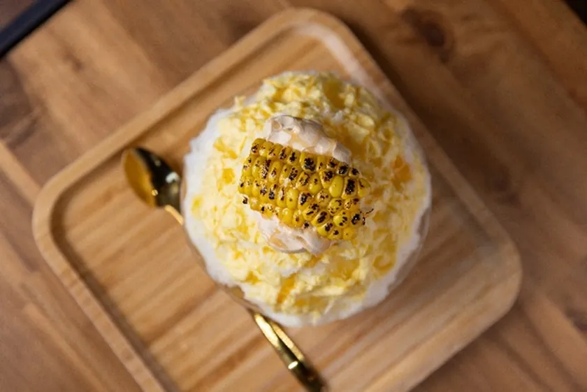 甘いものは食べたいけど、ダイエットも気になる!というお客様も多く、脂肪燃焼効果が注目されているMCTオイルをかき氷に使用いたしました。コーンの素材そのものの甘さと、粒の食感をお楽しみいただきながら、自家製コーンシロップと相性の良いキャラメルクリームを合わせることで、口の中で、甘さとほろ苦さがとけ広がります。オイルを使用することで、コーンシロップが一層まろやかになり、コーンの甘味とキャラメルのほろ苦さをうまく中和してくれます。新感覚のギルトフリーなスイーツかき氷に仕上がりました。