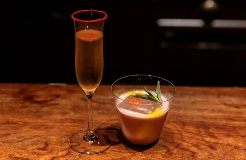 ラズベリーMCTオイル×ブラッディメアリーカクテル(左) マンゴーアマニオイル×パプリカヨーグルトカクテル(右)