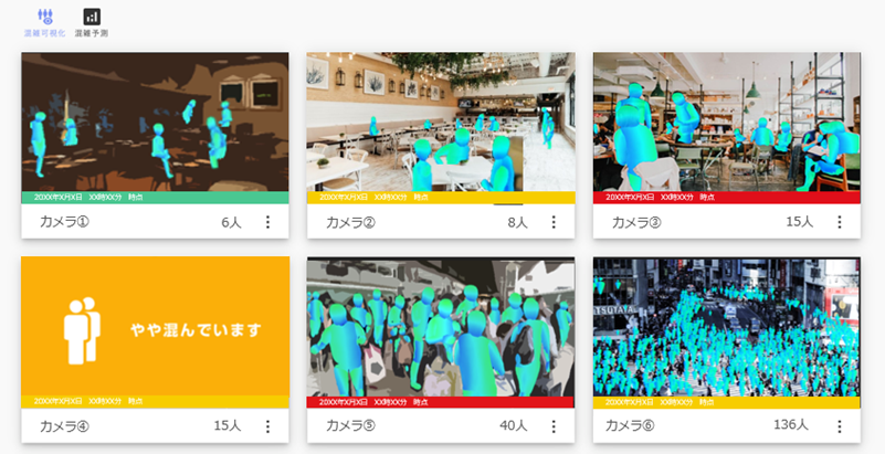 顧客・利用者が必要としているコンテンツをAIによって自動的に生成・配信することができる機能です。AI画像解析による混雑可視化をアプリケーション内でリアルタイムに見ることができるコンテンツ等をご利用いただけます。今後は、生成AIを活用した配信文面やコラム記事作成機能の搭載を予定しております。