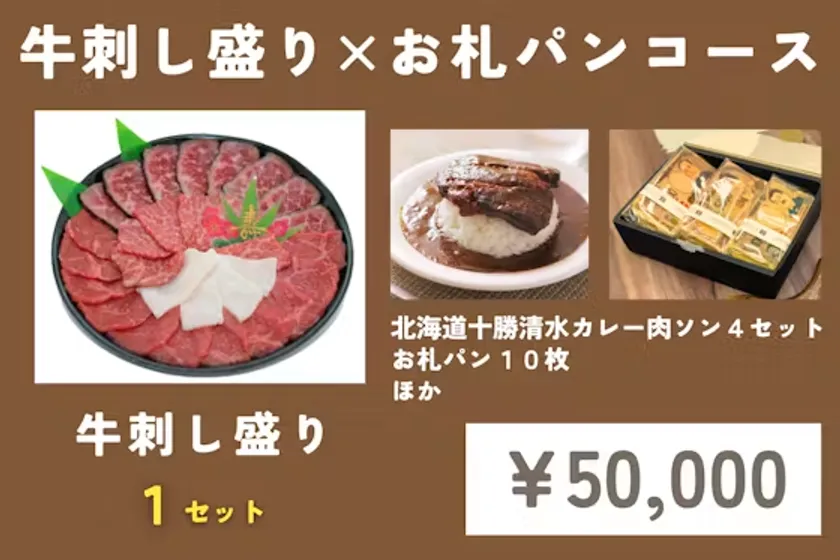 ・牛刺し盛り×お札パンコース(5万円/限定30名)
