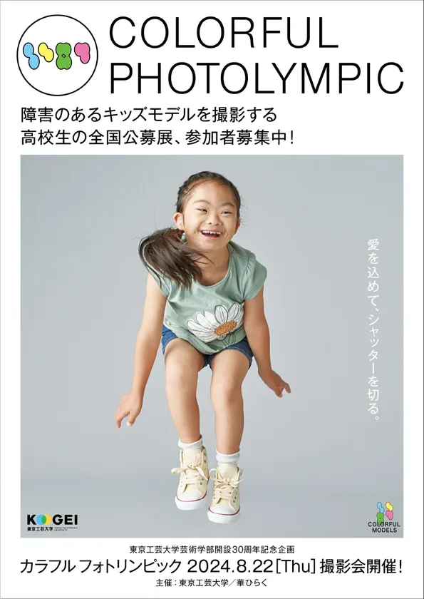 東京工芸大学(学長:吉野 弘章、所在地:東京都中野区、以下、本学)は、本学芸術学部開設30周年を記念し、カラフルモデル(障害のあるキッズモデル)の魅力や意義を社会に伝える、高校生を対象としたフォトコンテスト「カラフルフォトリンピック」(以下、本コンテスト)を開催します。