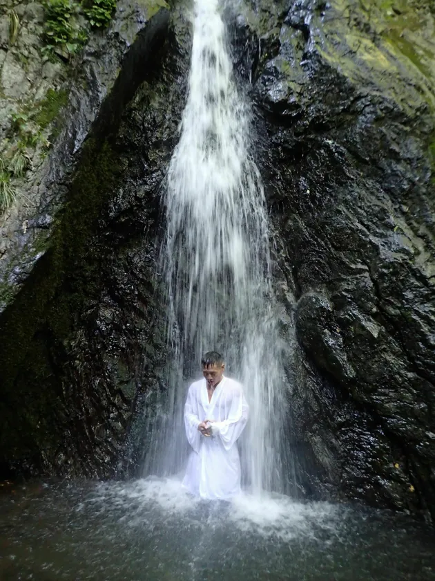 天光寺の滝修行はただ一心に精神統一を行います。自然と一体化し達成感で満たされることが醍醐味である天光寺の滝行は、行衣一衣服をまとい水・滝に打たれ、無我の中で自分自身を見つめる修行です。