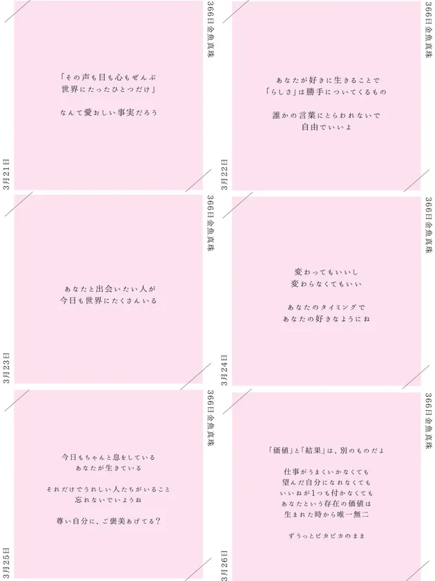366日金魚真珠投稿には、個性豊かな金魚真珠の紹介とともに毎日ひとつ、言葉を添えてきました。