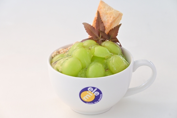 2階のカフェでは、秋が旬の“栗”や“シャインマスカット”を使用したパフェボウルが新登場。栗のパフェボウルは最後の仕上げとして、お客様の目の前でマロンペーストをかけて提供いたします。
