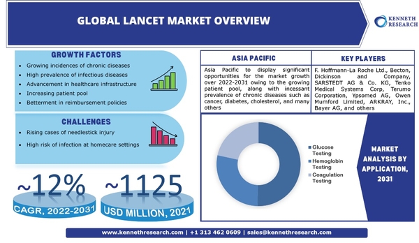 世界のランセット市場は、世界の人口増加により、2022年から2031年の間に約12%のCAGRで成長する