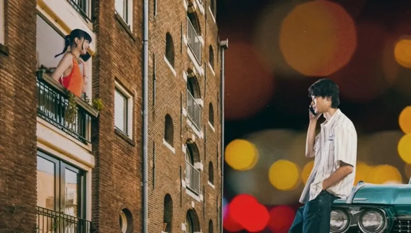 ビルのベランダから手を振る女の子。その視線の先には、オープンカーに乗った男の子が。