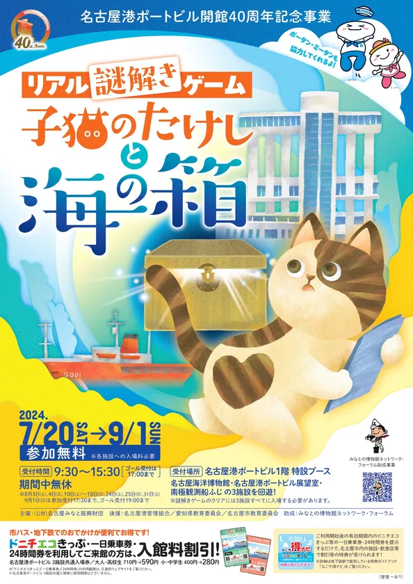 名古屋港ポートビルで謎解きゲーム「子猫のたけしと海の箱」を 7月20日~9月1日に開催