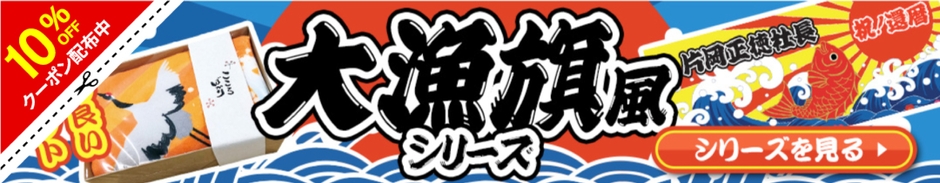 7月15日は、海の日であり漁師の日です!7月15日から先着100注文に、大漁旗風シリーズ全品を通常価格より10%オフになるクーポンを配布いたします。この機会に、ご自宅用はもちろん、ギフト用としてもぴったりな大漁旗風シリーズ商品をお求めください。