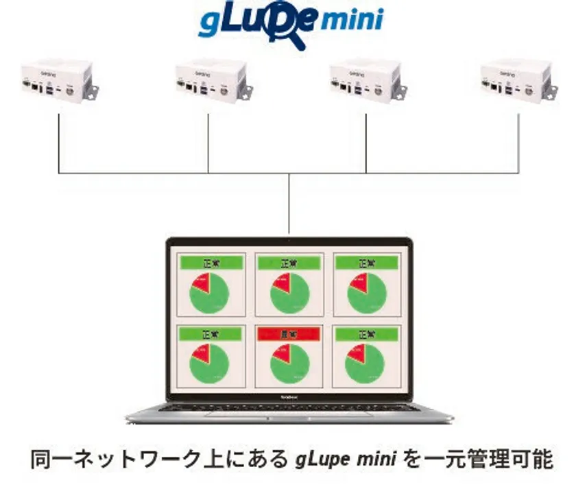 gLupe miniは、複数台設置した場合の端末管理も簡単です。gLupe miniが同一ネットワーク内に接続されていれば、PC一台で全てのgLupe miniの状態を把握することが可能です。