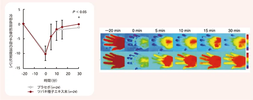 血流改善効果(温熱効果)を確認(ツバキ種子エキス末)