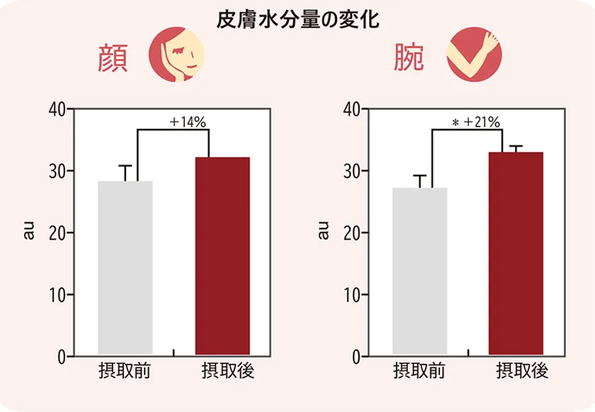 ・美肌効果(肌の保湿、シワ改善、線維芽細胞賦活作用)を確認