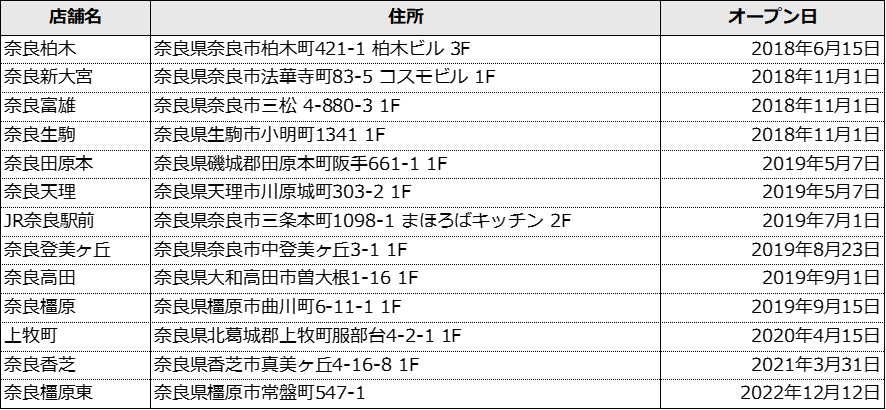 ●奈良県内のエニタイムフィットネス店舗 ※オープン日順