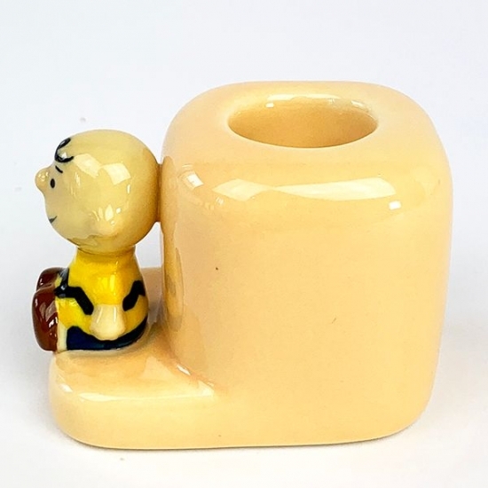まずは、チャーリーブラウンのスタンドをご紹介します。パステルっぽいイエローのスタンドに、チャーリーブラウンがちょこんと座っています。インテリアとして置いておくだけでも可愛いですよね♪