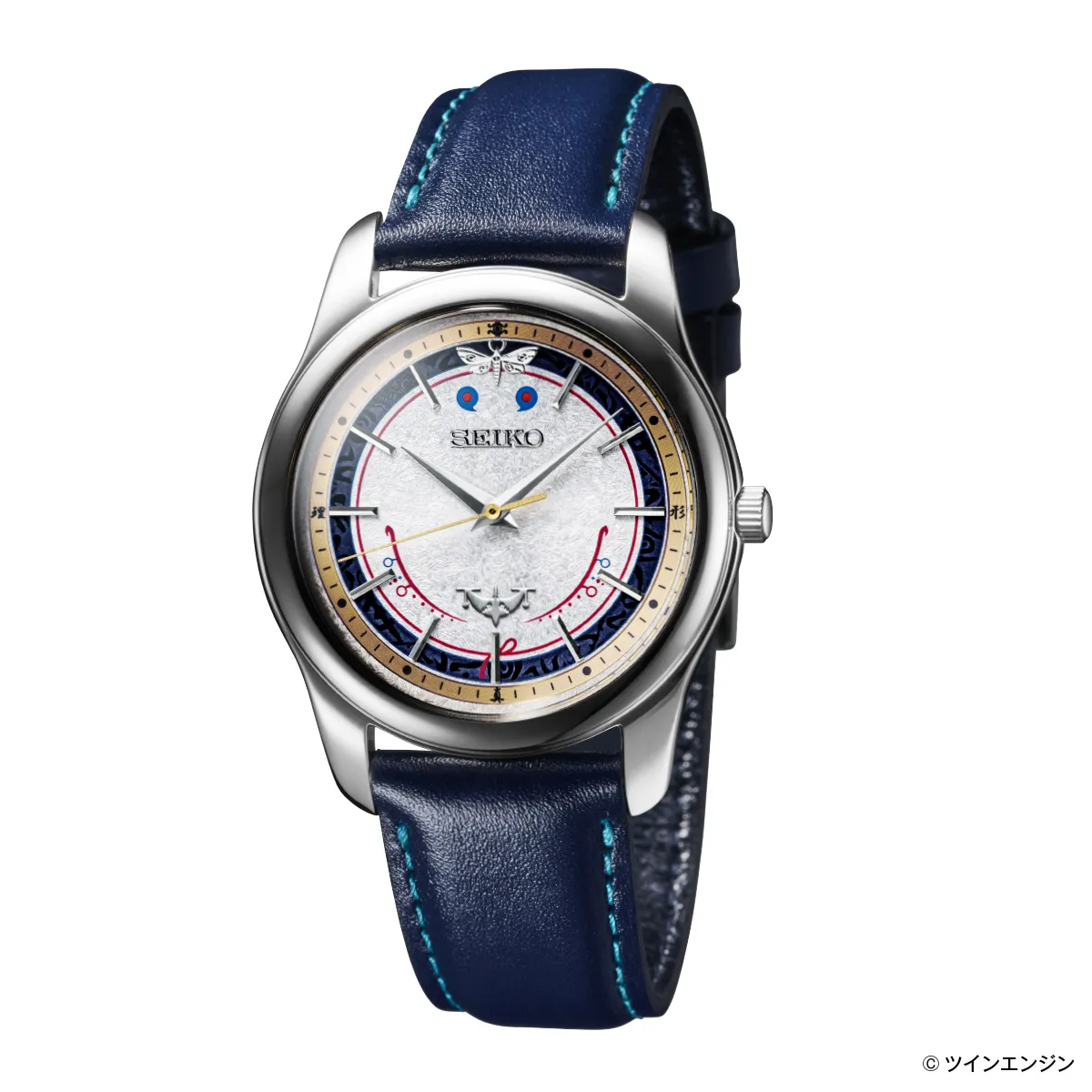 文字盤には「形(かたち)」「真(まこと)」「理(ことわり)」の文字が浮かび、『劇場版モノノ怪』の映像を思わせる和紙テクスチャを再現した型打ちが施されています。ベルトは神出鬼没の謎多き存在、薬売りの着物をイメージした濃紺色を採用。
