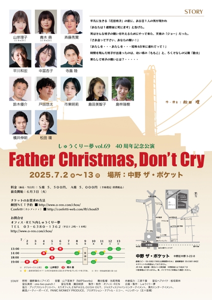 しゅうくりー夢 vol.69 40周年記念公演『Father Christmas, Don't cry』が2025年7月2日 (水) 〜 2025年7月13日 (日)に中野ザ・ポケット(東京都中野区中野3-22-8)にて上演されます。