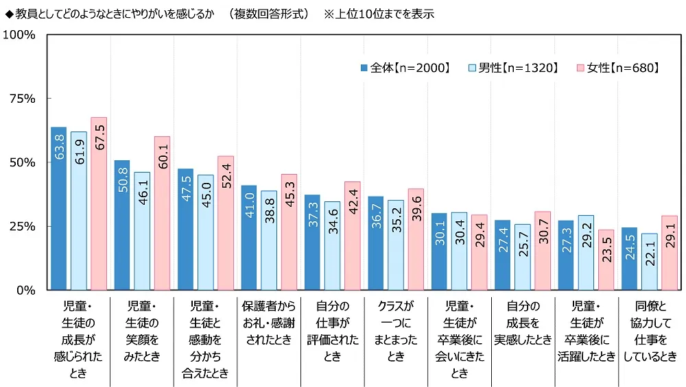 ・教員としてどのようなときにやりがいを感じる? 1位「児童・生徒の成長が感じられたとき」2位「児童・生徒の笑顔をみたとき」3位「児童・生徒と感動を分かち合えたとき」