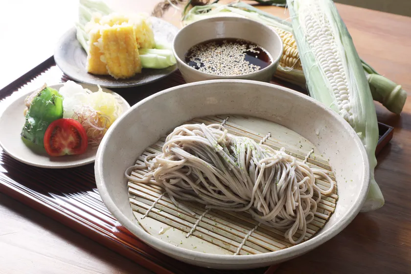 とうもろこしまつり2024期間中は限定メニュー・商品を多数ご用意。「玉蜀黍の天婦羅と寿長生蕎麦」や「郷のコーンパン」、「焼きとうもろこし」など、旬の味覚であるとうもろこしを苑内各所で堪能できます。さらに「焼きとうもろこし」に使用する“寿長生の郷 秘伝のたれ”を今回特別販売。他にも菓子売場では、例年6月末の数日間のみ販売している「水無月」や、「蓬葛餅」などの限定菓子も購入可能です。