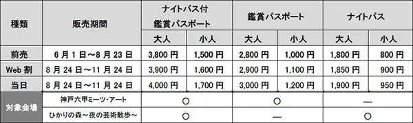 ※ROKKO森の音ミュージアム、六甲高山植物園、トレイルエリア(一部会場)、風の教会エリアは有料会場