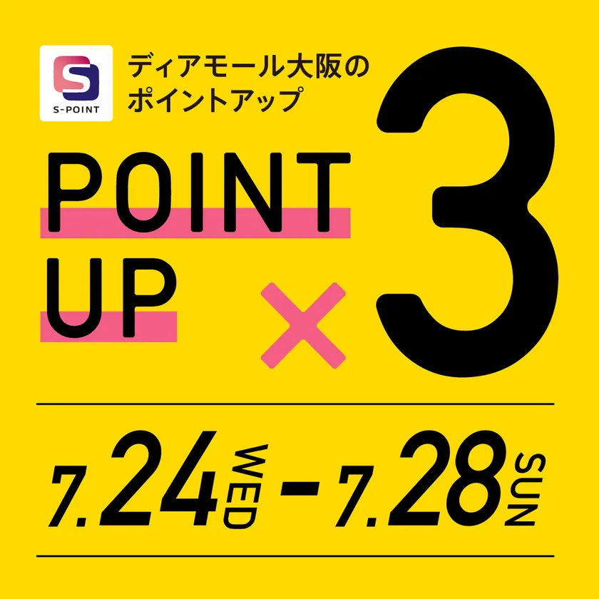期間中、Sポイント対象カードをディアモール大阪でご提示いただくと、通常お買上金額110円(税込)につき1%の1ポイント進呈のところ、3%の3ポイントを進呈いたします!
